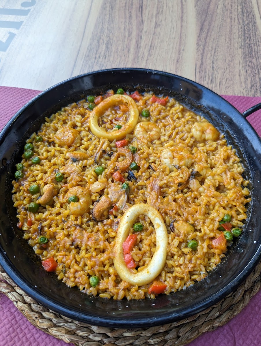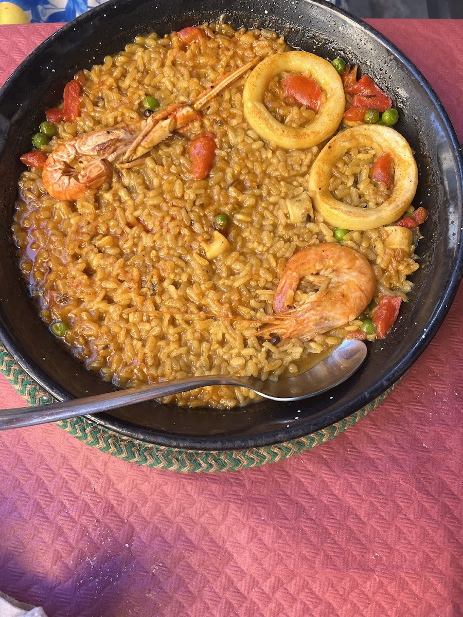 The pitufos with manchego, the paella, orange juice, and the coffee amazing! The staff was attentive. The churros and waffles weren’t great though. Would still recommend!